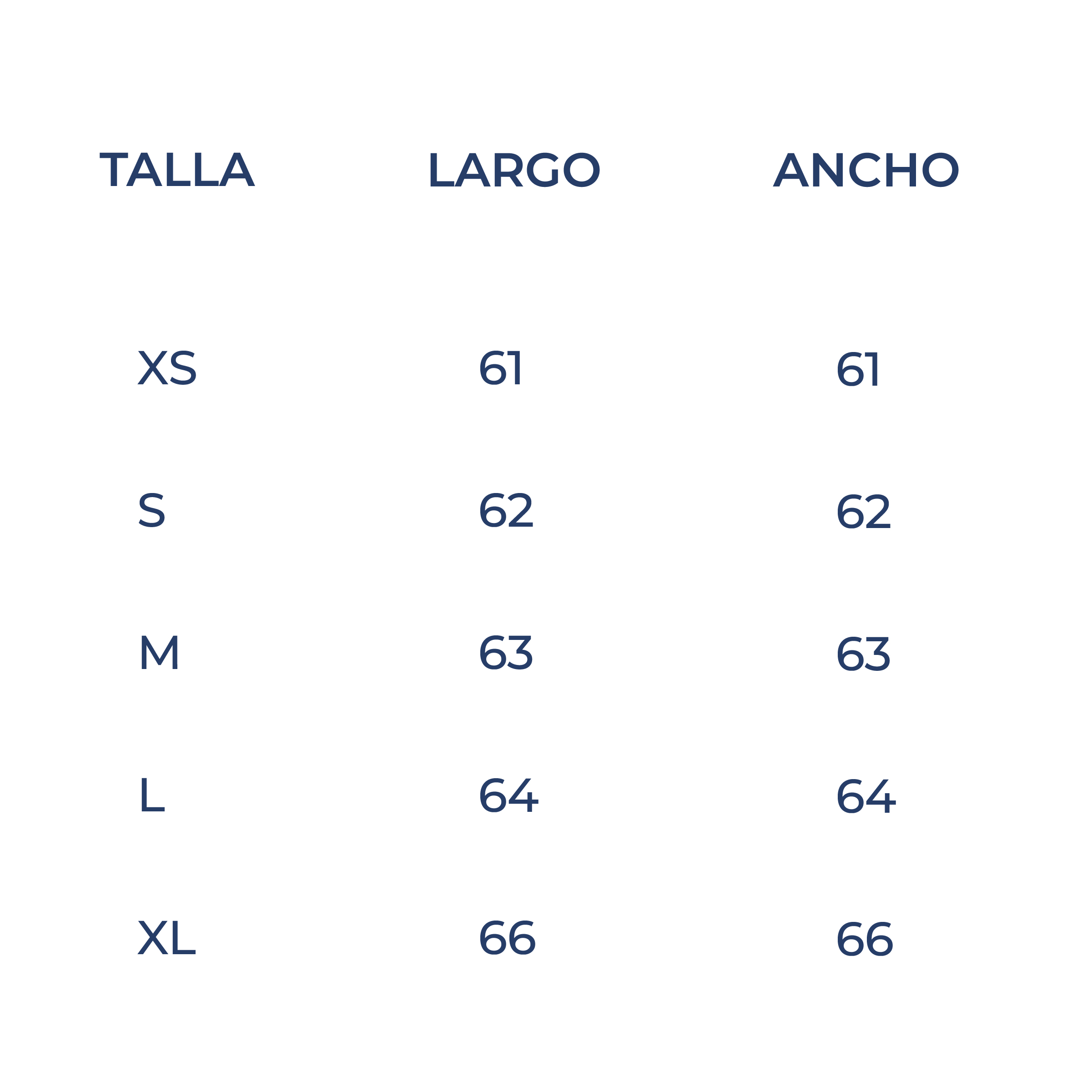 XS, S, M, L, XL